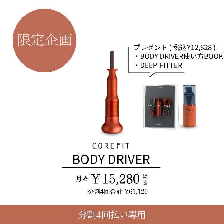 サービス説明文本サービスは、BODY DRIVER(59800円_税込)について、4か月の分割支払い(1ヶ月ごとの手数料330円)にてご購入いただけるようにしたサービスです。